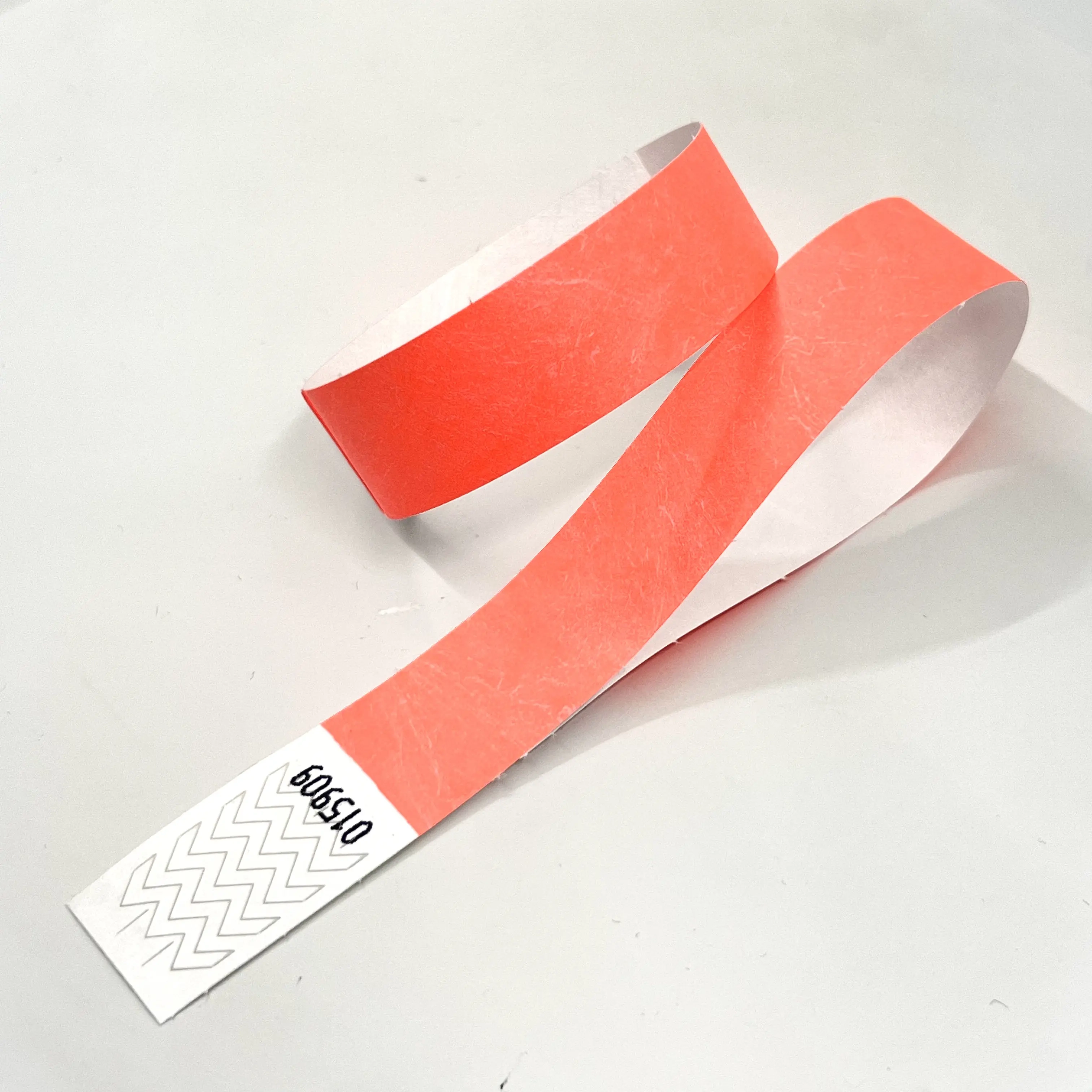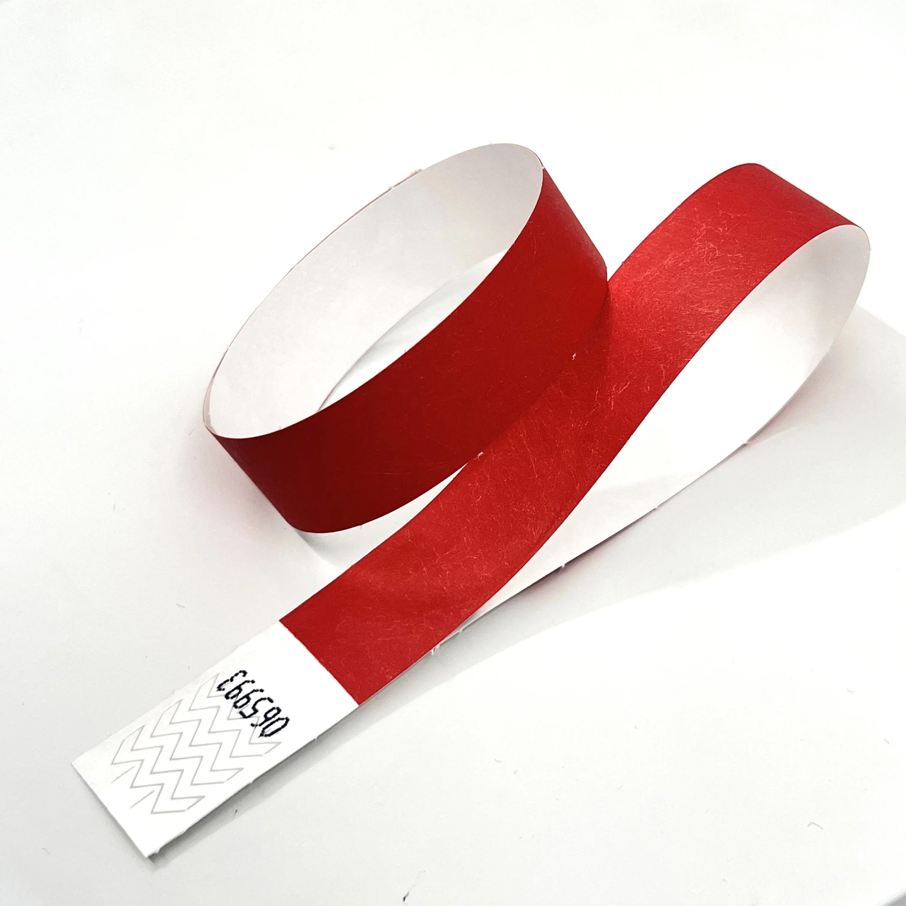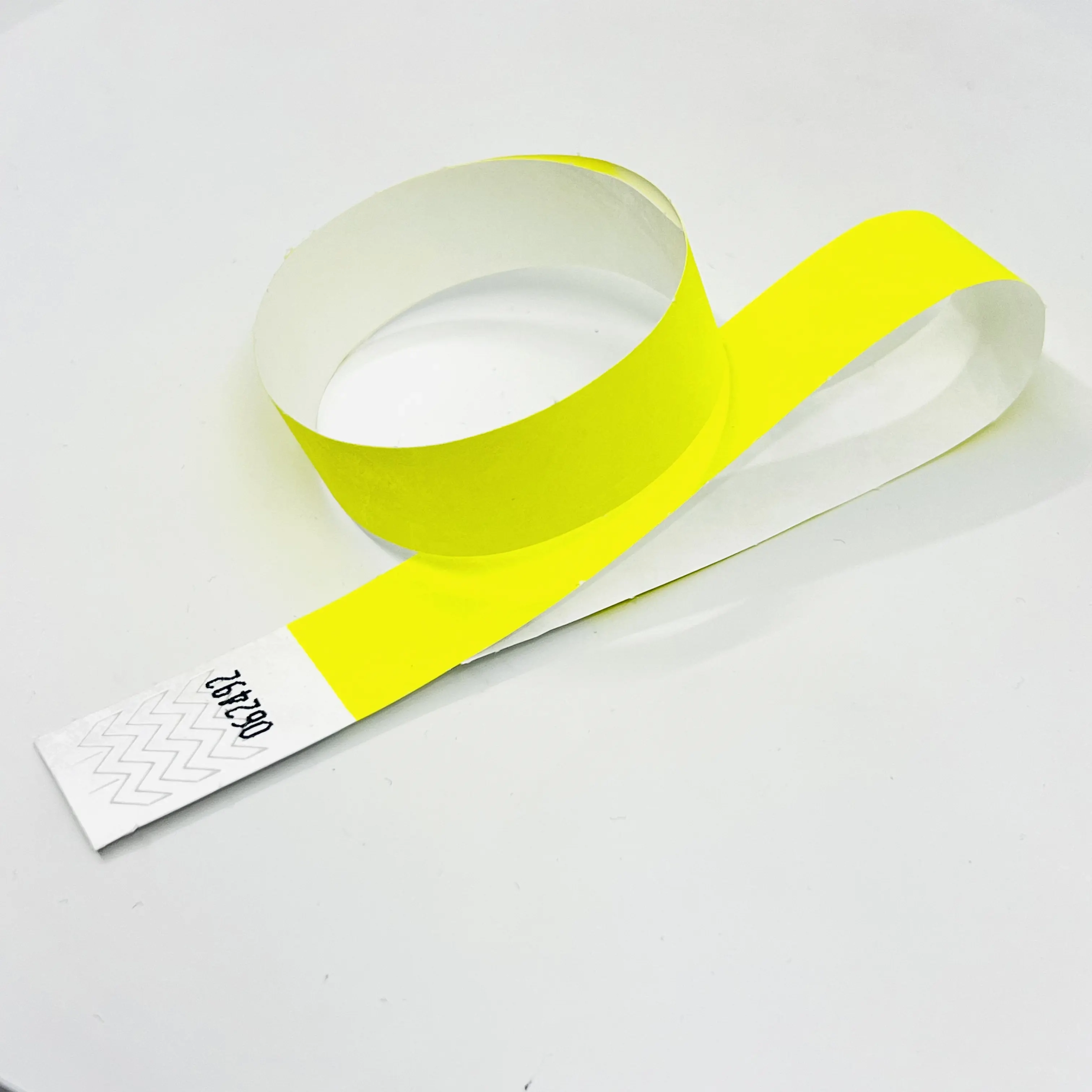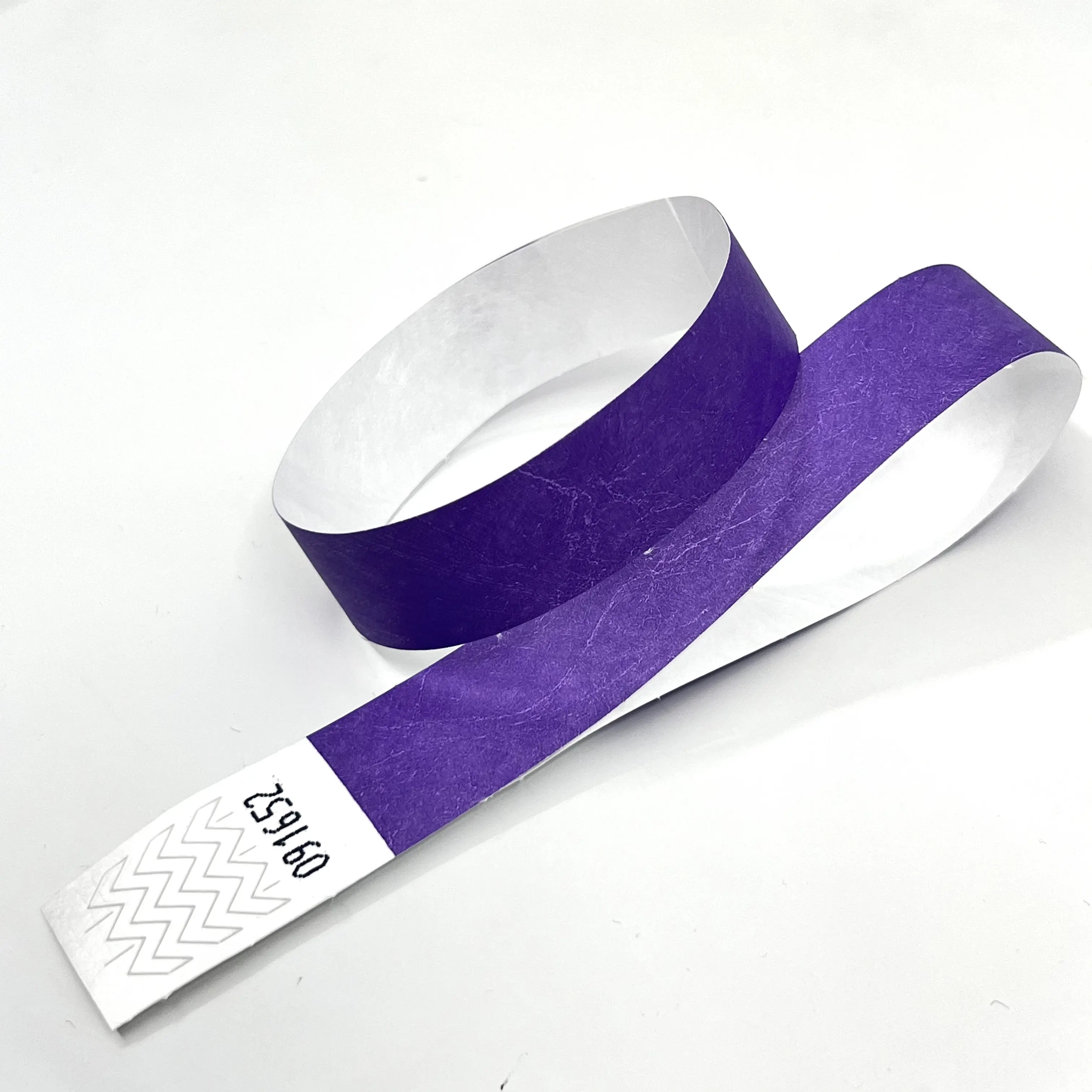 Le Tyvek est une fibre plastique qui ressemble au papier, ce qui en fait un matériau imperméable et très difficile à déchirer. Les bracelets Tyvek sont fermés autour du poignet avec une bande adhésive qui s'affiche immédiatement lorsqu'elle est altérée.